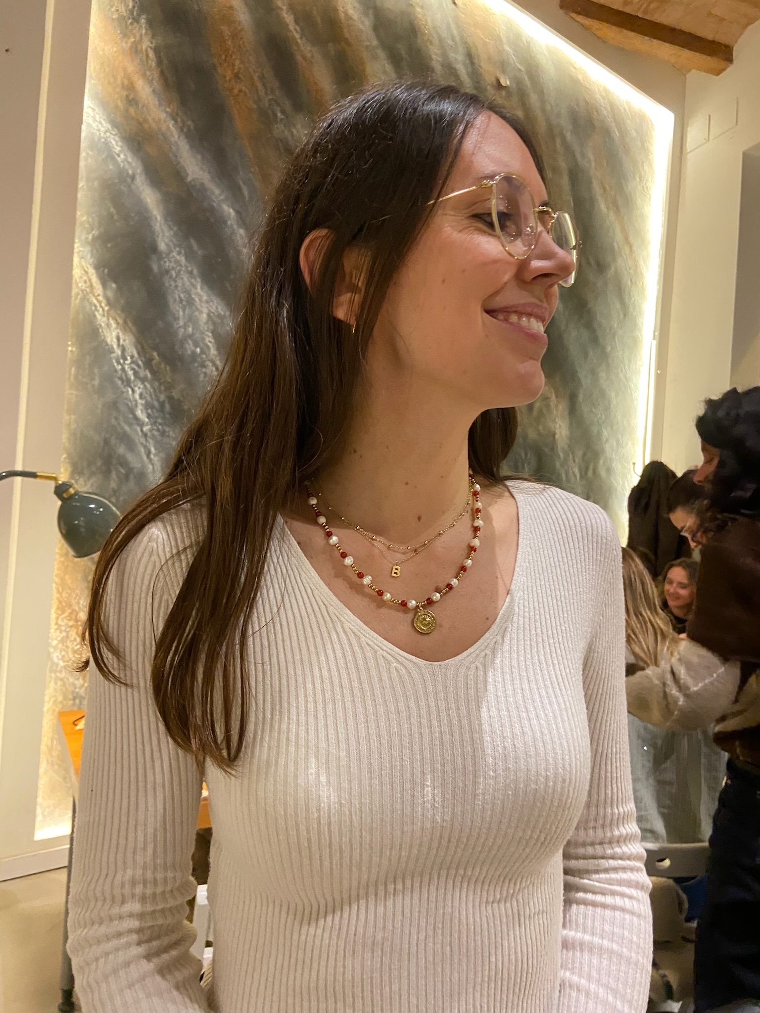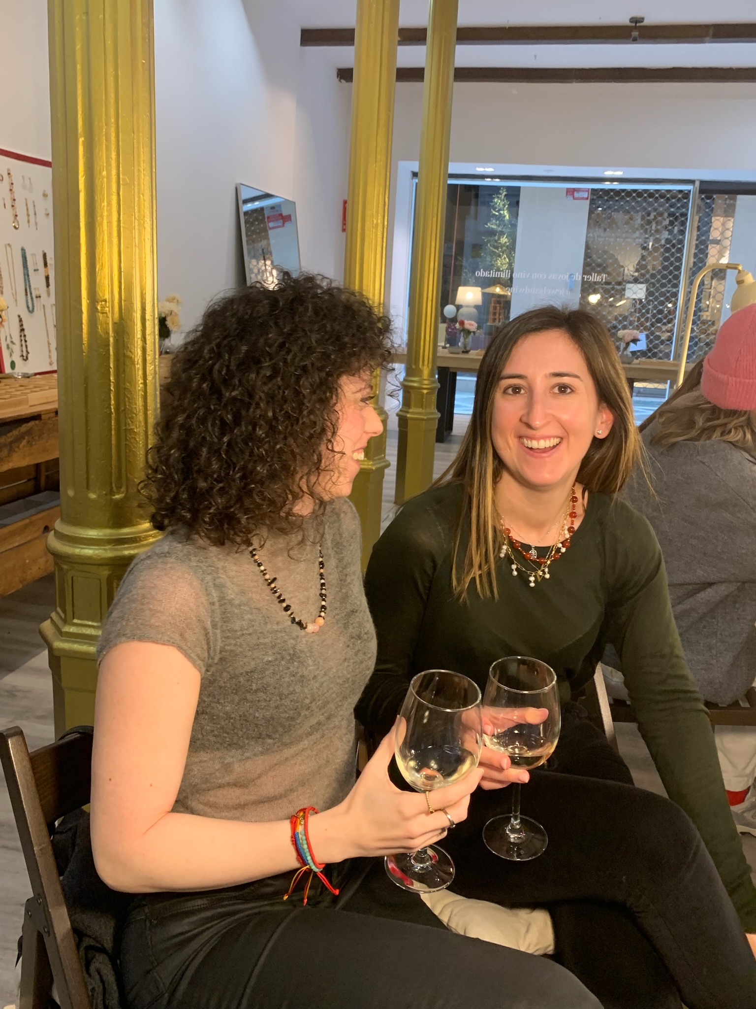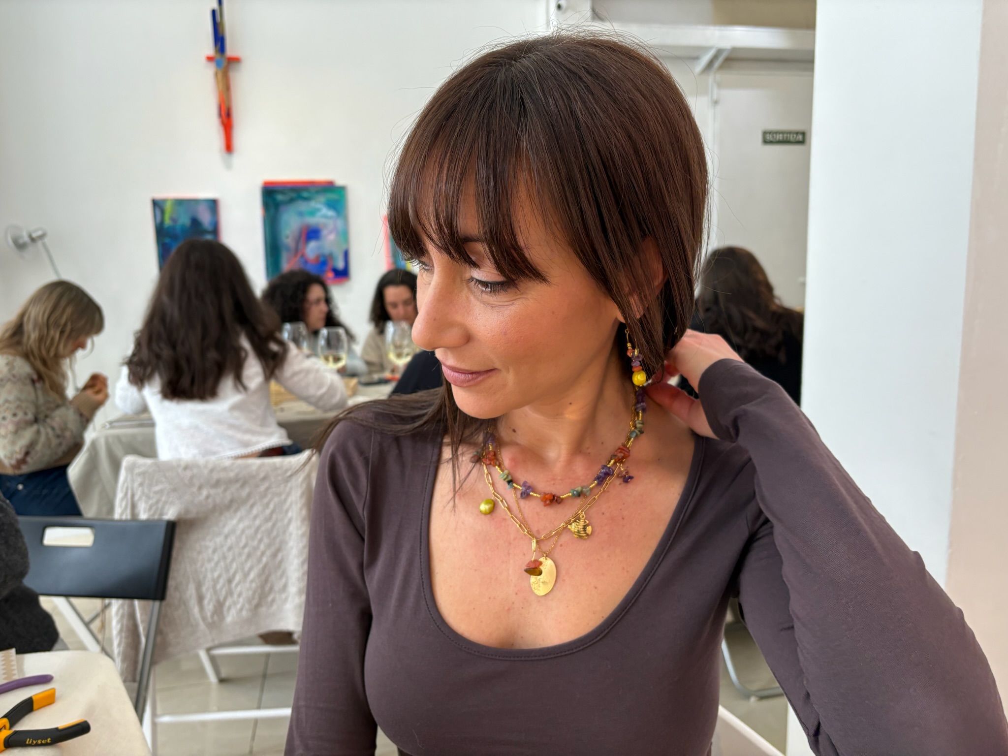 Una experiencia guiada donde diseñas 3 accesorios: un collar de hilo, un collar o pulsera de cadena y unos pendientes. Tú eliges colores, formas y combinaciones mientras brindas con vino.